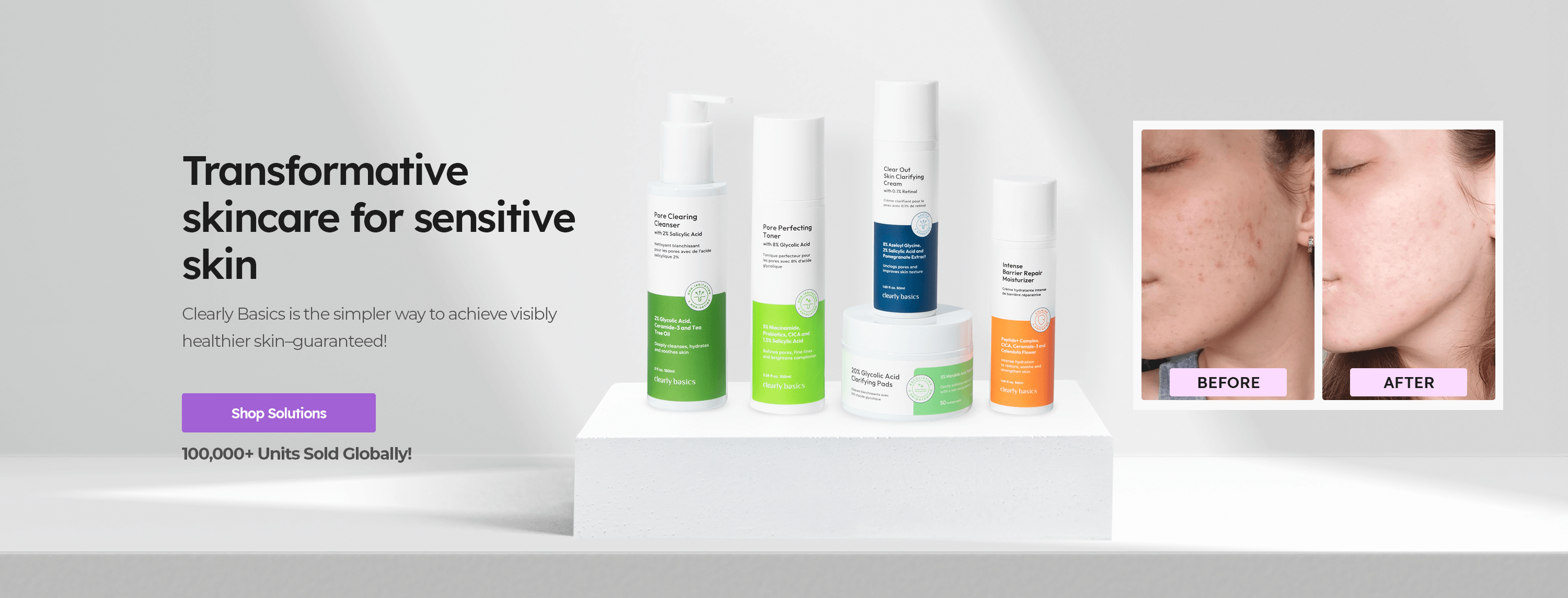 Transform your skin with Clearly Basics — where cleanical-grade actives, calming botanicals, and real results meet.