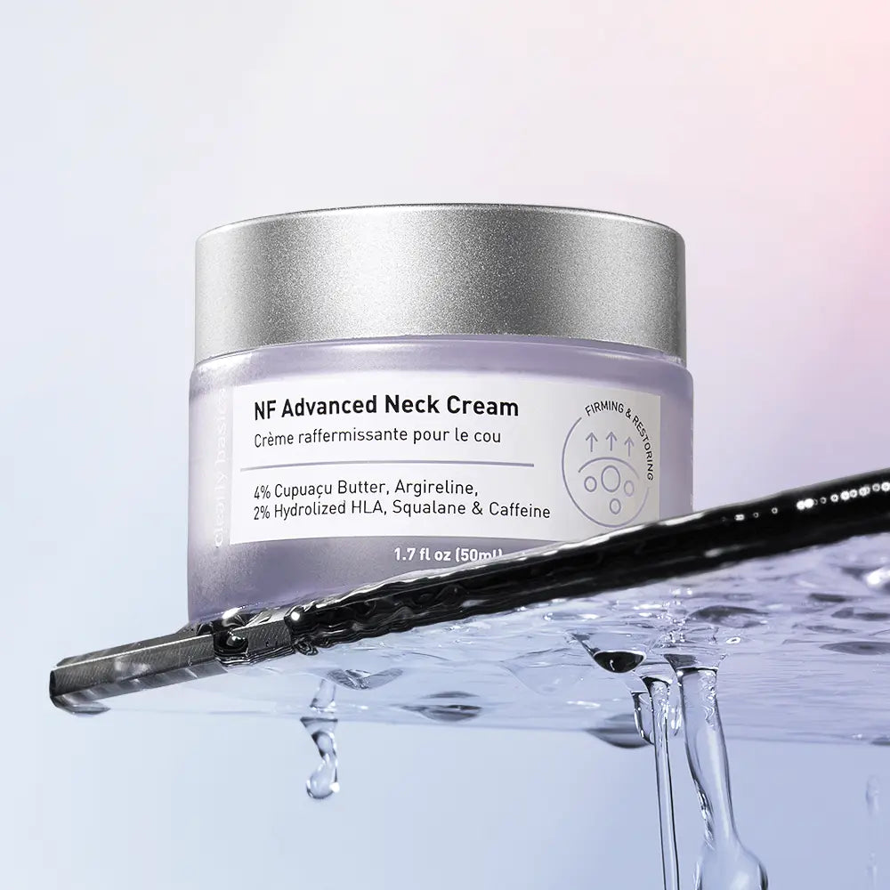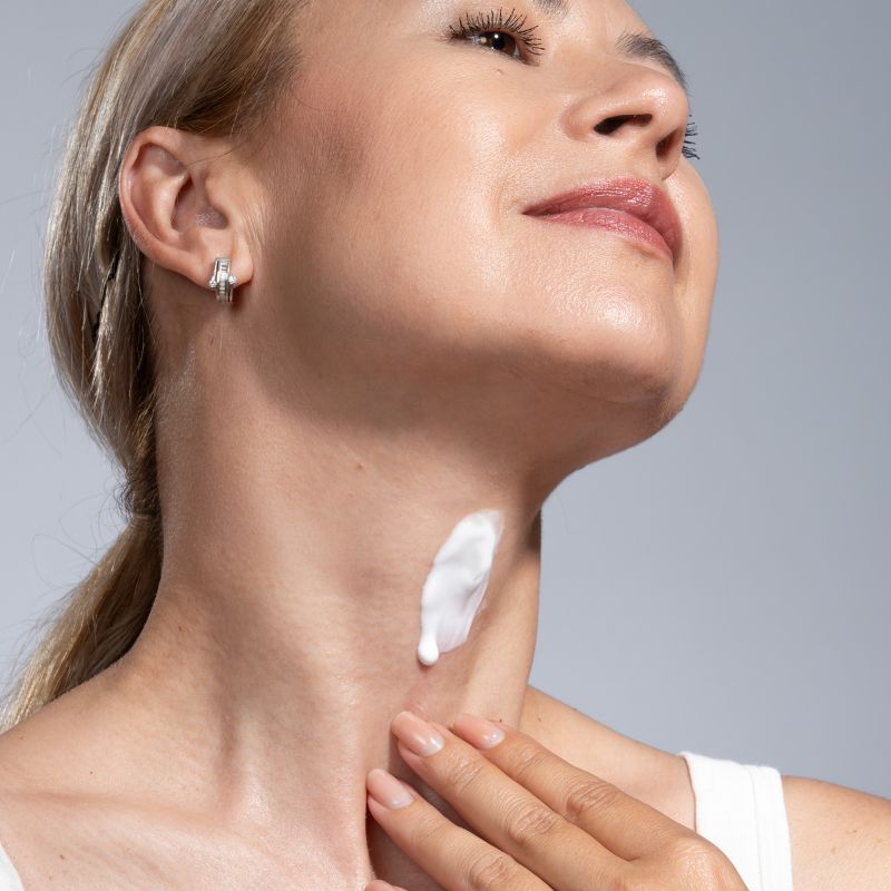 Massage and press 2 dabs of NF Advanced Neck Cream in an upward motion from chest to jawline. Morning and night.